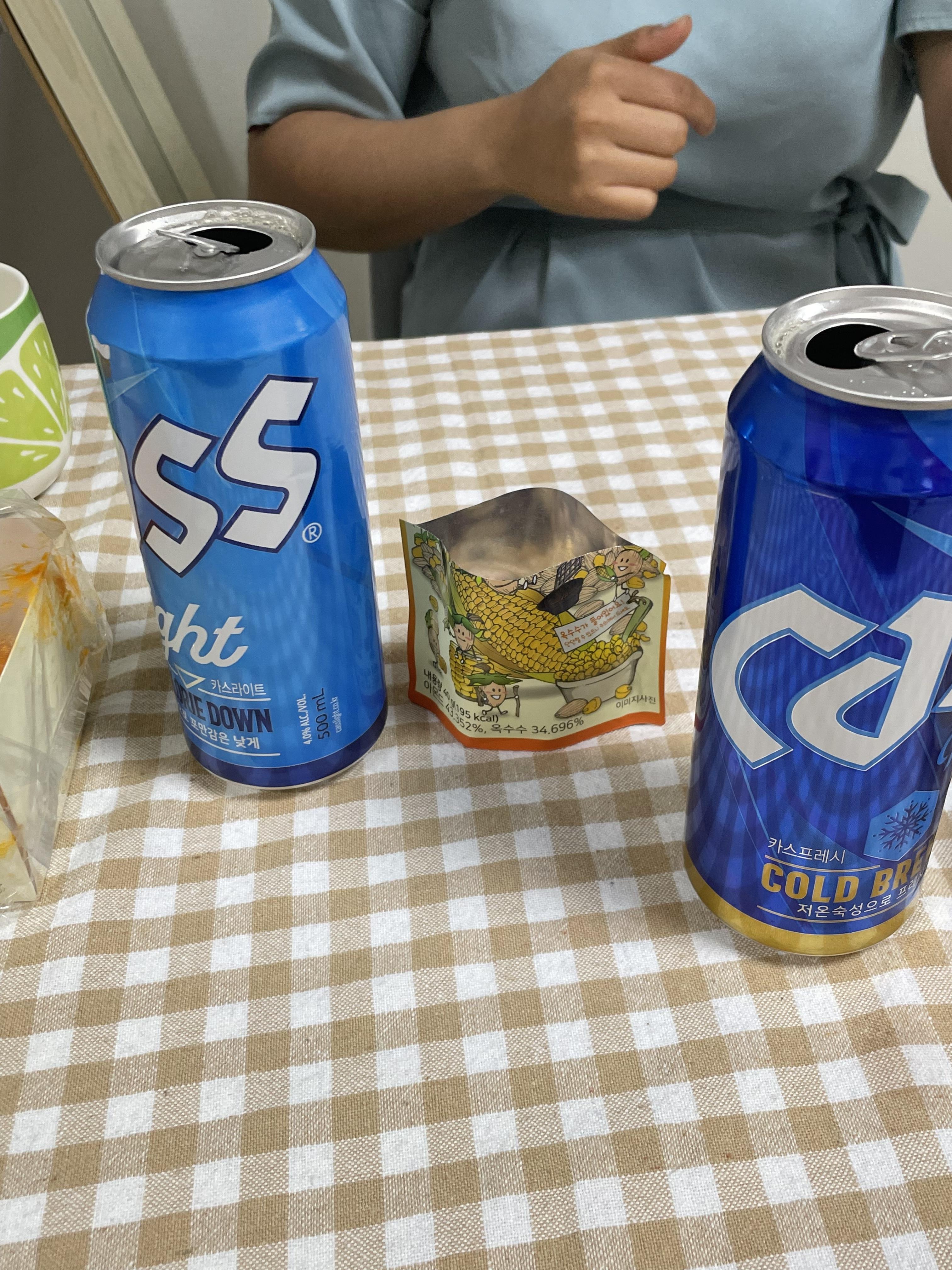 특유의 맑은 맛이 느껴지는 맥주캔을 따고 건배 후 P양이 함께 사온 견과류 과자를 오도독 먹으며 뒤풀이를 했다.